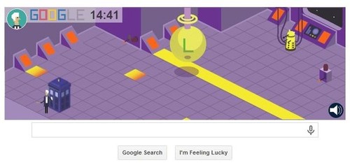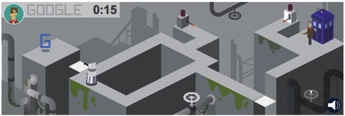 No doodle especial de Doctor Who, disponibilizado em todas as páginas da Google, é possível jogar com os onze personagens que já protagonizaram a série.