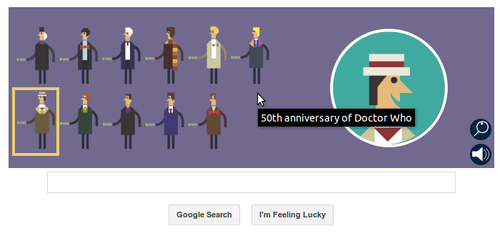Voltando ao "Whodle". Este doodle era esperado por mais de 4 000 fãs que não se contentou que Google Street View tivesse incluido Tardis dado que tinhan assinado uma petição pedindo a Google para assinalar esta data: 50º aniversário de Dr. Who.