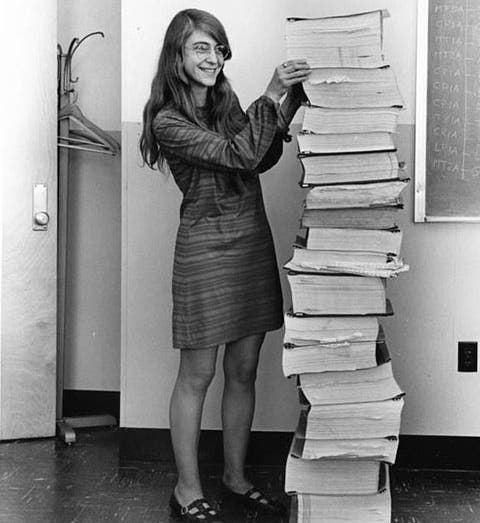 Margaret Hamilton, cujo código foi fundamental no lançamento da missão Apollo em órbita, em 1969 e na década seguinte. O trabalho de Hamilton não só foi altamente significativo para as alunagens, como também abriu caminho para as mulheres na ciência e na tecnologia (STEM).